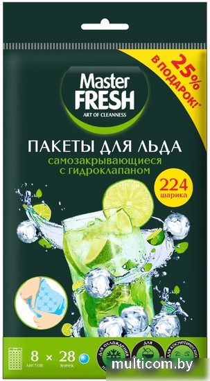 | Информация | Набор пакетов для льда Master Fresh Самозакрывающиеся с гидроклапаном (8x28шт). |