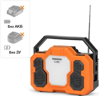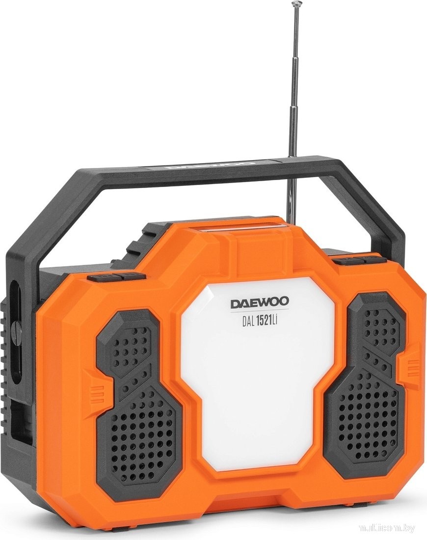 | Информация | 21В Li-ion единая платформа. Модель совместима со всеми аккумуляторными инструментами и батареями DAEWOO линейки 21В. 2 режима работы. Фонарь может работать в 2-х режимах: фонарь для освещения и переносная колонка для прослушивания любимой музыки. Мощность фонаря 15 Вт. Яркие светодиоды мощностью 15 Вт обеспечивают максимальный световой поток 1500 Лм. Цветовая температура 5700К соответсвует дневному свету и обеспечивает комфортное использование фонаря. Три режима работы освещения. Фонарь может работать в 3-х режимах: - «100% яркости» - световой поток 1500 Лм - «50% яркости» - световой поток 800 Лм - «25% яркости» - световой поток 400 Лм Переключение режимов осуществляется простым нажатием кнопки Мощность аудио динамиков 6 Вт. Встроенные динамики мощностью 6 Вт позволяют использовать фонарь как переносную колонку. FM радиоприемник. Встроенный приемник FM диапазона 87,5 – 108 MHz позволяет слушать любимое радио где угодно. Внешняя антенна обеспечивает стабильный прием сигнала с минимальными помехами. Bluetooth соединение. Встроенный Bluetooth приемник обеспечивает надежное подключение смартфона для прослушивания любимой музыки. Радиус действия до 10 м. LCD дисплей. Отображает всю необходимую информацию об FM диапазоне или Bluetooth подключении. Прорезиненные клавиши управления. Защищают элементы управления от попадания пыли и влаги. Рукоятка для переноски. Складкая рукоятка в верхней части фонаря позволяет комфортно переносить фонарь. Крепление на стойку. Резьбовое крепление на 5/8” позволяет закрепить фонарь на стойках для оборудования. Мягкие опоры. Опоры из вспененного материала обеспечивают устойчивое положение фонаря на поверхности без риска повредить её. |