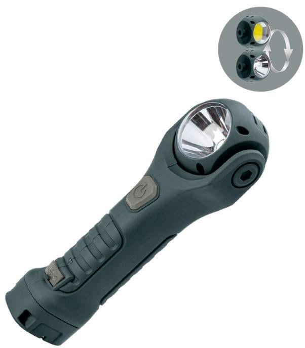 | Информация | Революционный дизайн с вращающейся «головой» не только позволит менять источник света в виде классического луча на светильник широкого света, но и держать фонарик как обычным, так и пистолетным хватом. В качестве отдельно стоящего светильника, можно ставить свет под любым углом без применения громоздких подставок. Фонарь легко поместится в бардачок. Автомобилисты оценят магнит на корпусе, и сигнальный красный свет. А на природе выручит складное кольцо для подвешивания, и сменный аккумулятор, который позволит взять больше батарей с собой. |