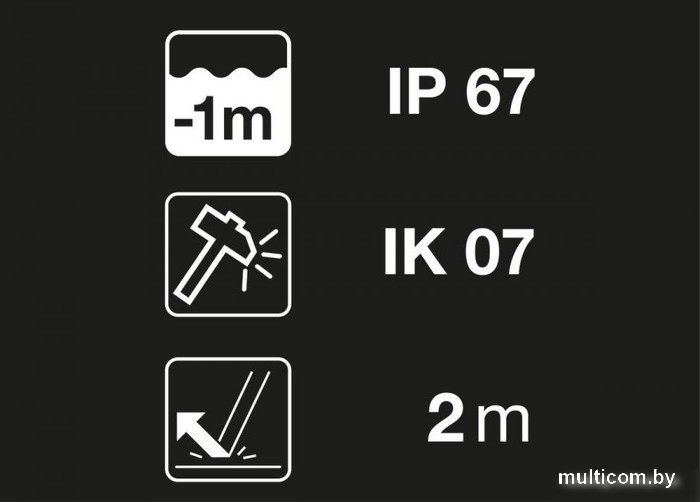 | Пыле-, влаго-, ударопрочность | IP67 |