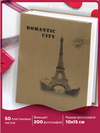 | Информация | Фотоальбом станет настоящей коллекцией памятных дат и событий, а также отличным подарком. Состоит из 50 полипропиленовых листов размером 17.5х22 см с карманами и вмещает 200 фотографий размером 10х15 см по 2 штуки на странице. Обложка фотоальбома выполнена в бежевых тонах с изображением символа Парижа — Эйфелевой башни. Листы фотоальбома склеены в единый блок. |