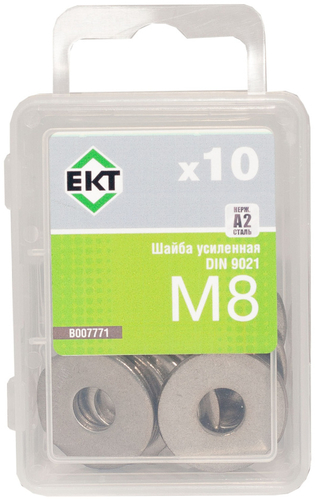 | Информация | Шайба плоская, увеличенная DIN 9021. Используется для подкладывания под головки болтов, винтов, шурупов с шестигранными головками или под гайки для уменьшения давления на контактную поверхность прикрепляемого материала и предотвращения его деформации или повреждения. Изготовлена из нержавеющей стали А2. Соответствует требованиям ГОСТ 6958-78, ISO 7093-1 и ISO 7093-2. |