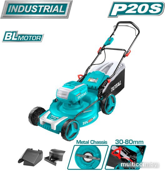 Информация | ? Высокоэффективная аккумуляторная газонокосилка, обеспечивающая качественное кошение, тишину и экологичность. ? Металлическая дека с большим захватом 460мм. ? Направляющая «расческа» впереди для эффективного захвата травы. ? Регулировка высоты среза травы одним рычагом (8 позиций). ? Складная рукоятка для удобства хранения. ? 3 в 1 функция: мульчирование, боковой выброс травы, травосборник. ? Современный надежный бесщеточный двигатель (brushless) с питанием 40v. ? Принадлежность к системе инструментов, работающих от одного аккумулятора – TOTAL P20S. ? Защита от случайного включения. ? Колеса большого диаметра. ? Комбинированный материал травосборника. |