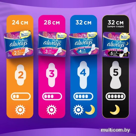 | Информация | Обзор Гигиенические прокладки обеспечивают лучшее сочетание комфорта и защиты. Прокладки более комфортны благодаря тысячам микроподушечек и новым, мягким как шелк крылышкам. Они также обеспечивают лучшую защиту благодаря защитным боковым барьерам и ультравпитывающему внутреннему слою, который запирает влагу внутри. Рекомендованы для ночного использования или для дневного использования при обильных выделениях. Нейтрализуют неприятные запахи. Ультравпитывающий внутренний слой. Гигиенические прокладки не раздражают кожу. |