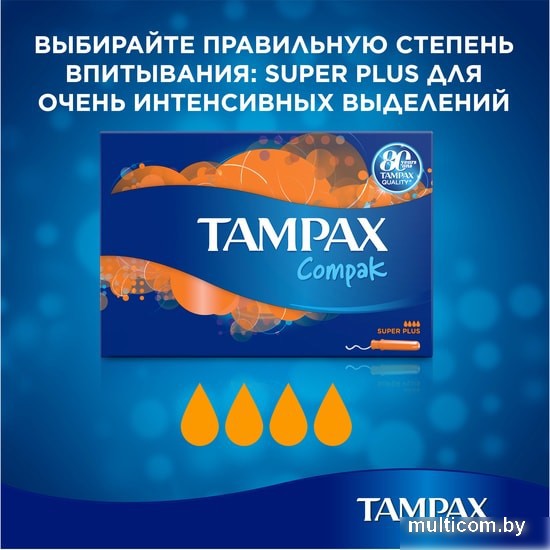 | Информация | Компактные тампоны Tampax Compak Super Plus обеспечивают надежную защиту при интенсивных менструальных выделениях. Тампоны Tampax Compak имеют гладкий и компактный пластмассовый аппликатор и закругленный кончик для комфортного введения. Впитывающие желобки направляют жидкость внутрь тампона, а защитная юбочка помогает предотвратить протекания, избавляя от беспокойства во время менструации. Тампоны обеспечивают надежную защиту без протеканий и дарят полную свободу действий. Лучшие тампоны из линии Tampax Compak при интенсивных выделениях. Преимущества: Компактные тампоны Tampax Compak обеспечивают надежную защиту. Выдвижной пластмассовый аппликатор для легкого введения тампона. Полноценная защита в компактном формате. Впитывающие желобки, направляющие жидкость внутрь тампона.Защитная юбочка помогает предотвратить протекания, обеспечивая дополнительную защиту.Благодаря наличию индивидуальной цветной упаковки тампоны можно носить с собой в сумочке. |
