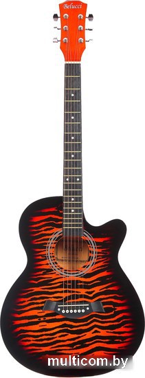 | Информация | ? Belucci BC4030 BS - это акустическая гитара размера 4/4 в корпусе Folk с вырезом (cutaway) для удобного доступа к верхним ладам. Оптимальна для начинающих и в качестве походного варианта. ? Роскошный внешний вид с тигровой расцветкой верхней деки и оранжевой нижней части, подчеркнутый глянцевым лаковым покрытием. ? Кленовый гриф с удобным профилем позволяет играть композиции различной сложности в любом жанре. ? Корпус изготовлен из липы - легкой древесины с однородной текстурой, обеспечивающей теплый и плотный звук. ? Анкерный стержень придает конструкции гитары дополнительную жесткость и предотвращает деформацию грифа. ?? Металлические струны легкого натяжения способствуют легкому освоению техники игры на гитаре даже совсем начинающими исполнителями. |
