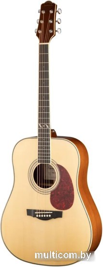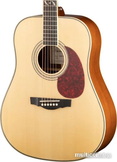 | Информация | DG303 — это доступная акустическая гитара начального уровня, которая обладает теплым и сбалансированным звучанием со звонкими верхними частотами и объемными нижними. Инструмент имеет корпус формы Dreadnought. Верхняя дека данной модели изготовлена массива ели, а нижняя дека и обечайка сделаны из махагони. В качестве материала грифа также использовалась древесина махагони, а накладка на гриф и бридж выполнены из палисандра. Также здесь установлены литые хромированные колки, которые обеспечивают стабильность строя. |
