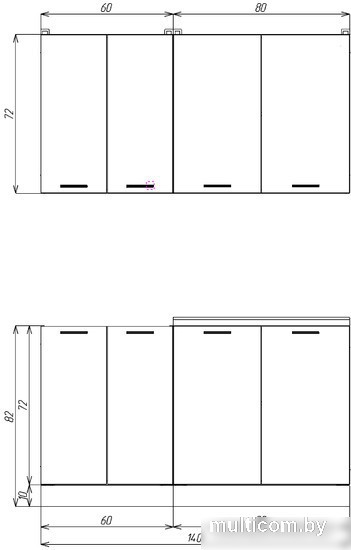 | Высота верхних шкафов | 72 см |