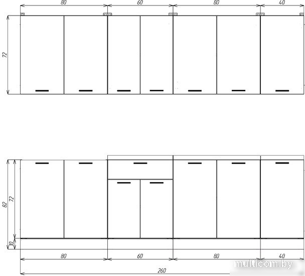 | Высота верхних шкафов | 72 см |