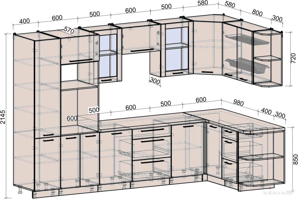 Высота нижних шкафов | 85 см |