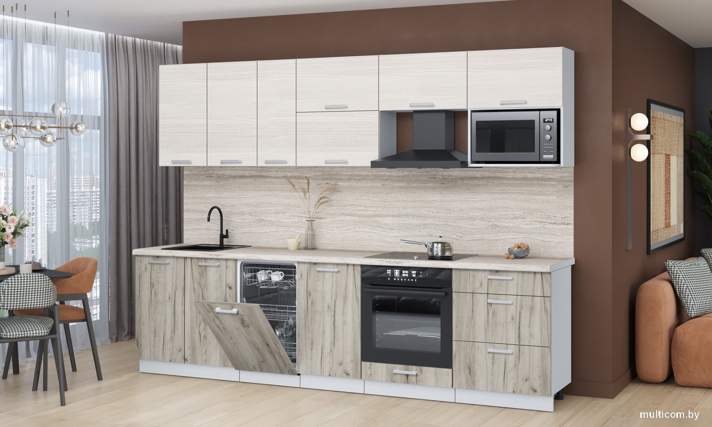 | Информация | -Ключевые характеристики Кухонный гарнитур представляет собой линейную конструкцию длиной 290 см и шириной 60 см, что делает его идеальным выбором для компактных кухонь. Изготовленный из ЛДСП, он сочетает в себе прочность и стильный внешний вид. Столешница выполнена из постформинга, что обеспечивает долговечность и легкость в уходе. -Преимущества и отличия Гарнитур включает четыре выдвижных ящика с шариковыми направляющими, что обеспечивает удобный доступ к кухонным принадлежностям. Наличие шкафов под вытяжку, встроенную духовку и посудомойку делает его функциональным и практичным решением для современной кухни. Верхние шкафы без стекла добавляют простоты и элегантности в дизайн. -Практичность Установка врезной мойки позволяет максимально эффективно использовать пространство, а отделка низа в виде цоколя придает завершенный вид. Крепления для навешивания и сборки включены в комплект, что упрощает процесс установки и сборки гарнитура. -Уникальность Цветовая палитра вудлайн кремовый, дуб серый и травертин серый создает гармоничное сочетание, которое легко вписывается в любой интерьер. Этот гарнитур станет не только функциональным, но и стильным элементом вашей кухни, подчеркивая ваш индивидуальный вкус. Читать дальше |