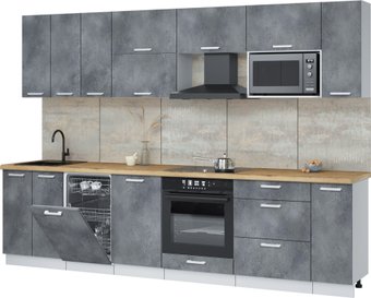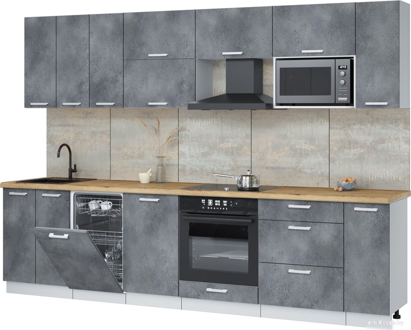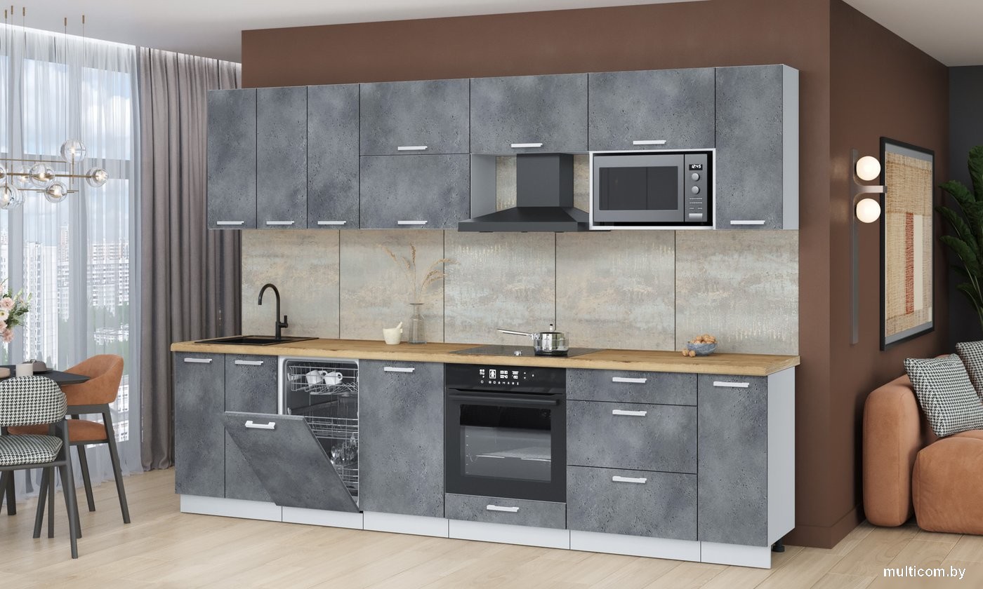 | Информация | -Ключевые характеристики Кухонный гарнитур представляет собой линейную конструкцию длиной 300 см и шириной 60 см, выполненную из ЛДСП. Он идеально подходит для небольших кухонь, обеспечивая функциональность и стильный внешний вид. Столешница из постформинга в цвете дуб бунратти добавляет тепла и уюта в интерьер. -Преимущества и отличия Гарнитур оснащен четырьмя выдвижными ящиками с шариковыми направляющими, что обеспечивает легкость и удобство в использовании. Наличие шкафа под вытяжку, встроенную духовку и посудомойку делает его практичным выбором для современных кухонь. Все фасады выполнены в сером цвете, что придает гарнитуру современный и лаконичный вид. -Практичность Отсутствие открытых полок и карго позволяет сохранить порядок на кухне, а врезная мойка обеспечивает удобство в использовании. Высота нижних шкафов составляет 85 см, что делает их удобными для работы. Крепления для навешивания шкафов и сборки включены в комплект, что упрощает процесс установки. -Уникальность Гарнитур выделяется своим современным дизайном и качественными материалами. Цветовая гамма в серых тонах с акцентом на дуб бунратти создает гармоничное сочетание, которое легко впишется в любой интерьер. Литая столешница обеспечивает долговечность и легкость в уходе, что делает этот гарнитур отличным выбором для активного использования на кухне. Читать дальше |