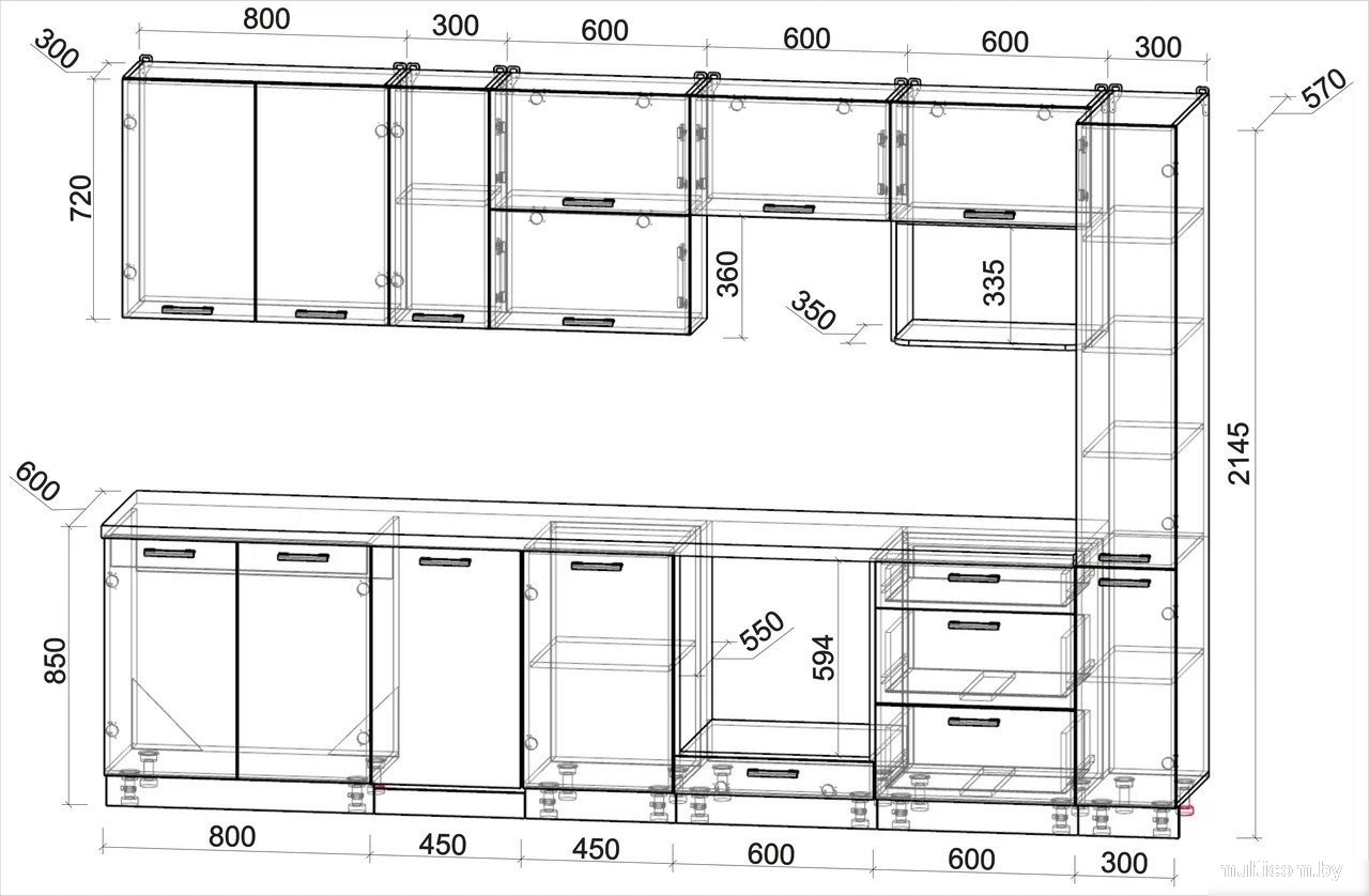 | Верхние шкафы | без стекла |