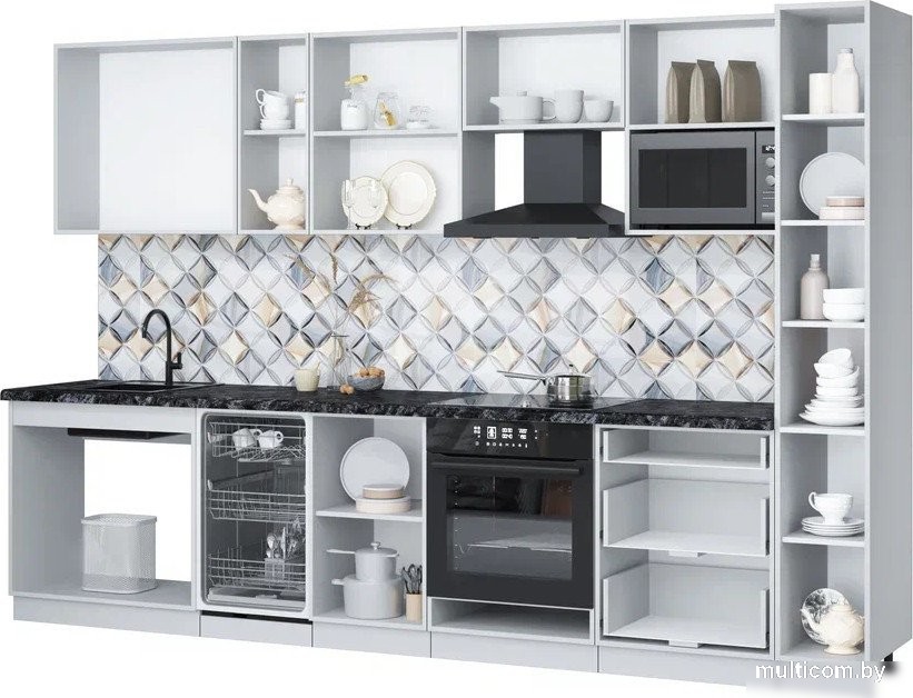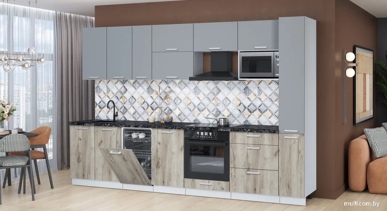 | Информация | -Ключевые характеристики Кухонный гарнитур представляет собой линейную конструкцию длиной 320 см и шириной 60 см, выполненную из ЛДСП. Он идеально подходит для небольших кухонь, обеспечивая функциональность и стиль. Высота нижних шкафов составляет 85 см, а верхних - 72 см, что делает его удобным для использования. -Преимущества и отличия Гарнитур оснащен четырьмя выдвижными ящиками с шариковыми направляющими, что обеспечивает легкость и плавность их открытия. Наличие шкафа под вытяжку, встроенную духовку и посудомойку делает его универсальным решением для современных кухонь. Столешница из постформинга в черном цвете добавляет элегантности и стиля. -Практичность Отсутствие открытых полок и карго позволяет сохранить порядок на кухне, а врезная мойка обеспечивает удобство в использовании. Крепления для навешивания шкафов и сборки включены в комплект, что упрощает процесс установки. Цветовая гамма в сочетании серого и древесного оттенка делает гарнитур универсальным для различных интерьеров. -Уникальность Гарнитур выделяется своей практичностью и современным дизайном, который легко вписывается в любой стиль интерьера. Использование качественных материалов, таких как ЛДСП и постформинг, гарантирует долговечность и легкость в уходе. Хромированная фурнитура добавляет нотку современности и стиля. Читать дальше |