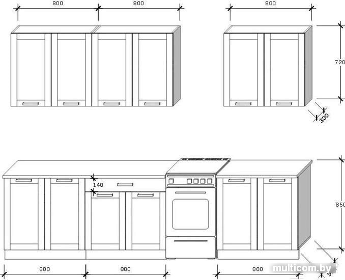 | Высота верхних шкафов | 72 см |