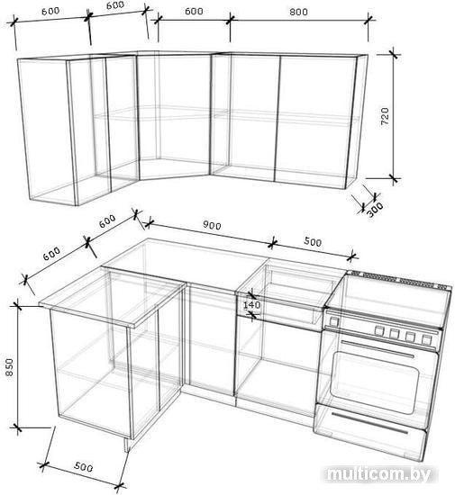 | Высота нижних шкафов | 85 см |
