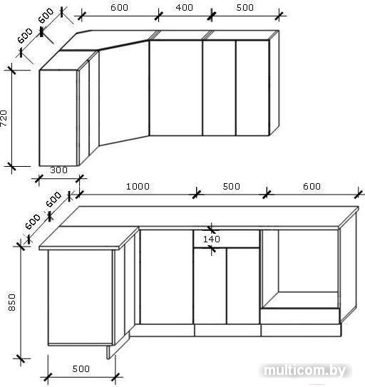 | Высота нижних шкафов | 85 см |