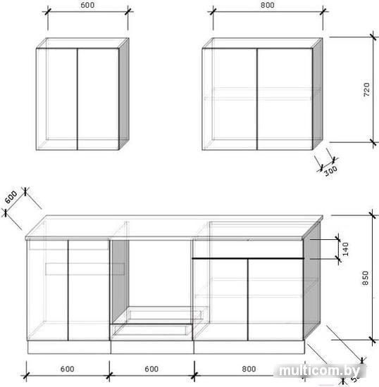 | Высота нижних шкафов | 85 см |