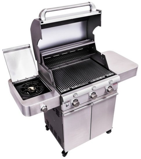 | Информация | Эта модель имеет классическую компоновку - три основные горелки и дополнительная боковая. Надежные горелки из нержавеющей стали имеют гарантию 10 лет. Основная решетка сделана из высококачественной (304й) нержавеющей стали. Под ней располагается решетка TRU-Infrared™, обеспечивающая уникальные преимущества:- Полное отсутствие вспышек от капающего жира- Поверхность гриля разогревается совершенно равномерно, без “слепых” зон- На 30% уменьшается потребление газа |