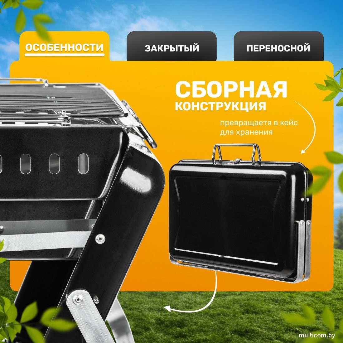 | Информация | Угольный гриль переносного типа с открытой конструкцией подходит для приготовления блюд на открытом воздухе. Решетка из хромированного металла устойчива к высоким температурам и способствует равномерному прожариванию. Стальной каркас рассчитан на длительный срок службы, а вентиляция помогает регулировать интенсивность горения углей. Черный цвет сохраняет практичность при частом использовании. Рабочая область размером 33.5?20.5 см подходит для одновременного приготовления нескольких порций. Компактные габариты — 48?31?30 см — позволяют легко транспортировать и размещать гриль даже в ограниченном пространстве. Вес в 3.6 кг делает модель удобной для переноски. Переносной гриль на углях подходит для пикников, дачи и кемпинга, сочетая функциональность, удобство и долговечность. В комплекте предусмотрен кейс для хранения и транспортировки. |