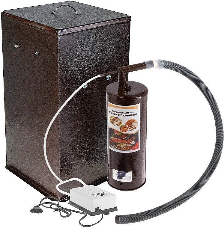| Информация | Преимущество коптилен холодного копчения в том, что приготовить аппетитные дымные блюда можно, не выходя за пределы участка. Представьте, как это круто, — принести к ужину свежайшие копчености. Внушительный размер коптильни холодного копчения позволит вам угостить деликатесами не только всю семью, но и большую компанию друзей. Процесс копчения желательно проводить в сухом, хорошо проветриваемом месте при плюсовой температуре. Как подготовить домашнюю коптильню холодного копчения к работе: Засыпать в дымогенератор деревянную щепу, оставив 3 см сверху. Закрыть дымогенератор, закрутить барашек. Соединить компрессор через силиконовый шланг к трубке дымогенератора. Включить компрессор в розетку, настроить мощность подачи воздуха. Поджечь щепу через отверстие для розжига. Когда из дымогенератора пойдет дым, соединить его с ёмкостью для копчения посредством гофрированного шланга. Отрегулировать мощность подачи дыма с помощью тумблера на компрессоре. Время приготовления блюда зависит от типа продукта и желаемой степени прокопченности. В качестве щепы мы рекомендуем использовать бук, ольху, дуб, яблоню и вишню. |
