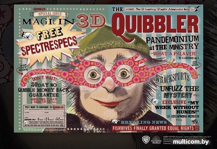| Информация | Держитесь подальше от проказ в ожидании нового учебного года в Хогвартсе с помощью этого пазла «Придира». Когда вы соберете пазл, то увидите обложку слегка поблекшего от времени журнала, издаваемого Ксенофилиусом Лавгудом. На «обложке журнала» - заголовки сомнительного происхождения и знаменитые спектрально-астральные очки его дочери Полумны. Пазл поставляется в тематически оформленной коробке, демонстрирующей изображение, которое нужно собрать. Такой пазл станет отличным подарком для поклонников Гарри Поттера и их близких! Пазл состоит из 1 000 элементов, в собранном виде его размеры составляют 71 на 48 см. Произведено по официальной лицензии Warner Brothers. |