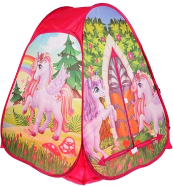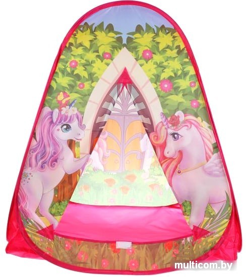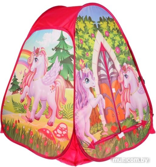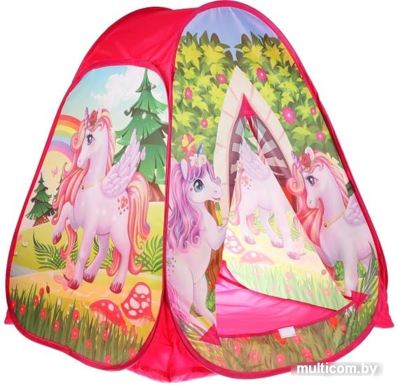 | Информация | Детская игровая палатка «Единороги» ТМ «Играем вместе» непременно понравится вашему ребёнку: - красочный дизайн - легко раскладывать-складывать Малыш с удовольствием будет играть в этой яркой палатке в виде шатра с изображением волшебных единорогов. Палатка быстро собирается и разбирается, к тому же очень компактна в собранном виде, поэтому её можно взять с собой на дачу или на пикник. Игры с детской палаткой ТМ «Играем вместе» развивают: - фантазию - воображение - моторику - координацию движений |