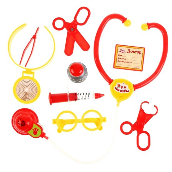 | Состав набора | ножницы (1 шт), шприц (1 шт), пинцет (1 шт), стетоскоп (1 шт), зеркало (налобное 1 шт), очки (1 шт), банка (витамины 1 шт), бейдж (1 шт) |