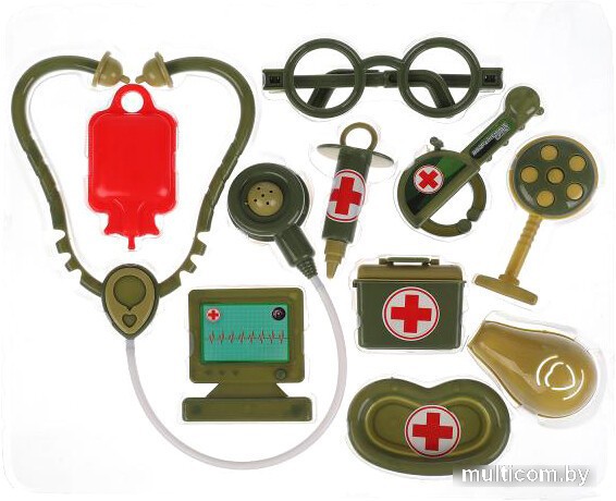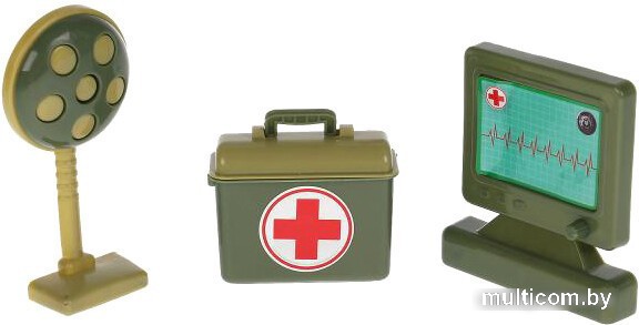 | Информация | Набор военного доктора ТМ «Играем вместе» непременно понравится малышу и поможет ему перестать бояться посещений врача. Ребенок сможет придумать множество увлекательных сюжетов, согласно которым он будет выступать в роли доктора, а пациентами станут любимые игрушки. Играя с набором, малыш станет увереннее и будет расширять свой кругозор, знакомясь в процессе игры с различными медицинскими инструментами и их назначением. Для хранения и переноски предметов предусмотрен удобный пластиковый чемодан с ручкой. Комплектация (10 предметов): стетоскоп шприц очки монитор и др. В процессе игры с набором ТМ «Играем вместе» дети знакомятся с профессией доктора и развивают: фантазию и воображение моторику координацию движений. Размер игрушки: 25?2?2 см Материал: пластмасса. Рекомендовано детям от 3-х лет. |
