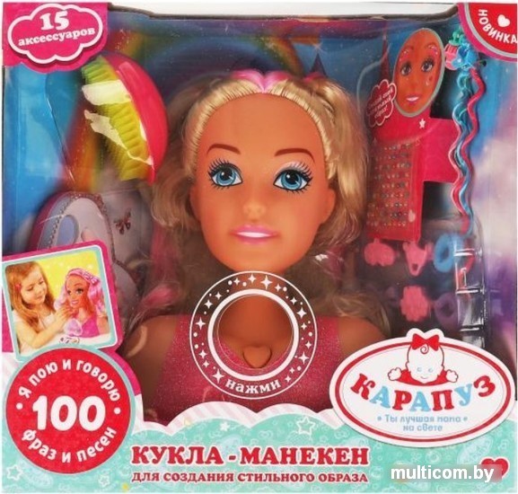 | Информация | Кукла-манекен для создания стильного образа ТМ «Карапуз» — прекрасный подарок для вашей принцессы. Воспроизводит 100 фраз и песен Шаинского. Эта очаровательная кукла, с детально проработанным личиком, очарует вашу малышку. Красивые блестящие волосы легко расчесываются. С этой куклой-манекеном девочка с удовольствием будет учиться делать самые разнообразные прически. Все аксессуары малышка может использовать и для украшения своих волос. Игра с куклой-манекеном ТМ «Карапуз» развивает: воображение, мелкую моторику,чувство вкуса и стиля. |