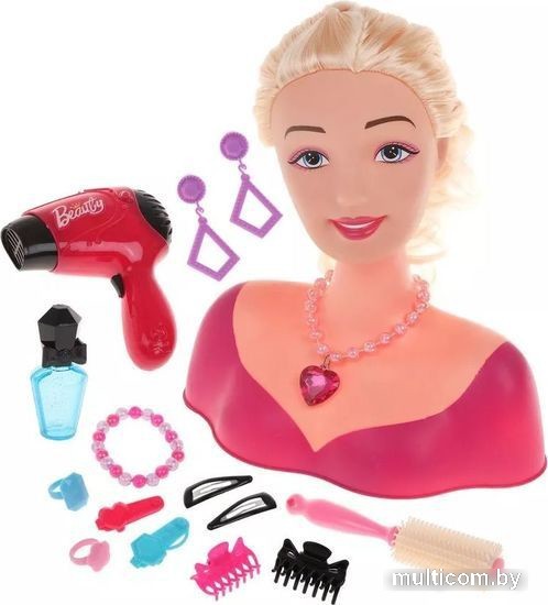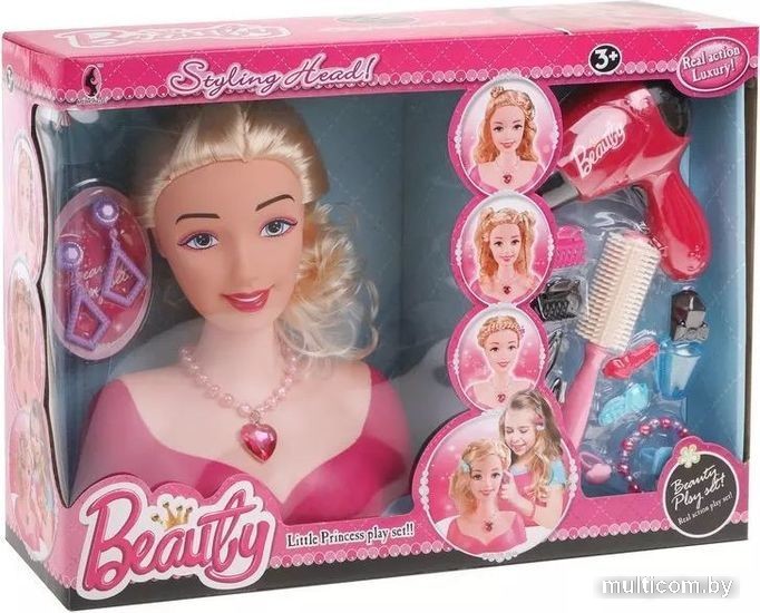 | Информация | Игровой набор «Стилист» исполнит детскую мечту – попробовать себя в роли настоящего профессионала индустрии красоты! С помощью набора девочка будет учиться делать разнообразные прически, тренируясь на манекене (входит в комплект). Для создания стильного образа в наборе прилагается все необходимое: электрифицированный фен (дует как настоящий при нажатии на кнопку), расческа, 6 заколок, флакончик, бусы с кулоном в виде сердца, а также пара сережек на клипсах, браслетик из бусин и 2 колечка для девочки. Фен работает от 1-й батарейки типа АА на 1,5 V (не входят в комплект). |