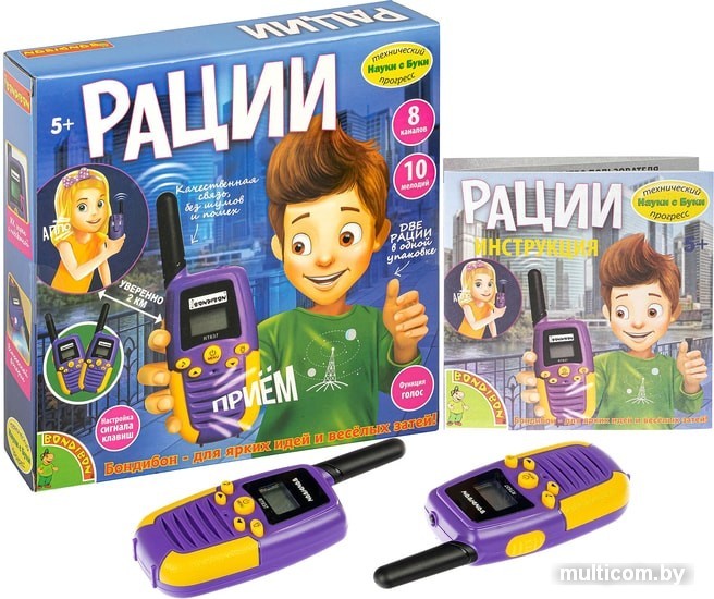 | Информация | Со специальным переговорным устройством - набором раций с ЖК-дисплеем от Bondibon, ребенок погрузится в захватывающую игру, сможет держать связь с другом или родителями на расстоянии до 2 км, играя в шпионов или проходя квесты.Рация имеет 10 встроенных мелодий и дополнительные функции блокировка кнопок, выбор звукового сигнала клавиш, экономия заряда батареи, распознавание голоса, фонарик, подсветка дисплея.Для передачи сообщения необходимо нажать и удерживать кнопку на боковой поверхности рации - режим говорить, чтобы принимать и слышать сообщение кнопку необходимо отпустить - режим слушать.Для работы устройства понадобятся 8 батареек типа ААА не входят в набор.Количество каналов 8, полоса радиочастот 446,0 446,1 МГц, мощность передатчика 0,5 Вт.Состав набора 2 рации, 2 крепления для ремня, инструкция.Корпус рации изготовлен из безопасного прочного пластика. |