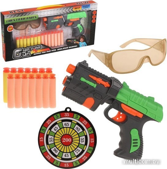 | Информация | Игрушечное оружие незаменимо во время игры в "войнушку"! Игрушка безопасна для детского здоровья. В комплекте есть футуристический пистолет, мягкие пули с резиновыми наконечниками (14 шт.), мишень и очки. Для выстрела нужно потянуть назад заднюю часть игрушки и нажать на спусковой крючок. Размер пистолета (ДхШхВ) составляет 20х4х13 см, размер очков (ДхШ): 12х4,5 см. |