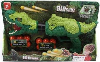 | Информация | Игрушечное ружье в виде динозавра стреляет софт-шарами. В комплекте их прилагается 12 штук диаметром 2,5 см. Шарики поочередно устанавливаются на край ствола игрового оружия. Выстрел осуществляется по поршневому принципу. «Голову» динозавра можно поворачивать на 360 градусов. |