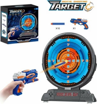 | Информация | Игровой набор «Точно в цель» включает бластер, 10 софт-патронов с резиновыми наконечниками и электрифицированную мишень на присосках. В мишени предусмотрены световые и звуковые эффекты, а также электронный счетчик попаданий. При попадании в центр мишени раздается звук аплодисментов. При попадании на сектора с цифрами игрушка воспроизводит количество полученных очков на английском языке. Как стрелять. Установите софт-патрон в ствол бластера. Потяните на себя подвижную часть корпуса оружия до щелчка, прицельтесь и нажмите на спусковой крючок. Внимание: игрушка не русифицирована! Мишень работает от 3-х батареек типа АА на 1,5 V. Элементы питания не входят в комплект. Размер мишени: 28х15х34 см. |