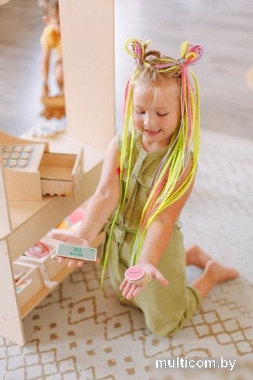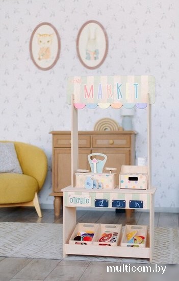 | Информация | Пора сходить на утренний рынок? А в какую стоимость молоко? Сколько весит? Настоящий магазин для ребят станет не только увлекательной игрой, но и поможет обучится счету! Ребенок окунется в долгие и интересные игры как в одиночку, так и с друзьями и братиком или сестричкой. Маркет никого не оставит равнодушным! Он станет идеальным подарком на день рождения для любого ребенка Магазин состоит из 4 основных элементов: прилавок, касса, весы, 3 ящика с “продуктами”. 1. ПРИЛАВОК. Весь прилавок раскладной и крепится на шурупы конфирмат, которые входят в набор. Основа прилавка — 2 деревянных ящика посередине и снизу. Они закрыты со всех сторон. Ребенок не просунет внутрь ручку и ничего не спрячет. Все края закругленные и тщательно отшлифованы. На прилавке висят 3 грифельные доски. Напишите на них цену на товары или нарисуйте один из продуктов 2. КАССА. На кассе размещены маленькие деревянные кнопочки на пружинках. Вы можете легко нажать на них, не прикладывая усилия. Внутри кассы встроен маленький ящичек для денег. Отодвиньте его с передней стороны кассы. Внутри ящечка хранится набор денег 3. НАБОР “ДЕНЕГ”. Чтобы играть с маркетом было еще более увлекательно, мы изготовили набор игрушечных денег. В него входят: 4 МОНЕТКИ И 5 КУПЮР. Деньги сделаны из толстой фанеры, поэтому ребенок ни за что не сможет их сломать 4. ВЕСЫ. Внутри коробочки — маленький механизм, который делает из игрушки настоящие весы! Положите разные продукты на весы и узнайте, какой весит больше. К весам идут 3 ДЕРЕВЯННЫЕ ГИРИ разного размера. 5. НАБОР “ПРОДУКТЫ”. Снизу прилавка поставьте 3 деревянных ящика. В них находятся разные продукты. От мяса и овощей до сладостей и фруктов. Всего в наборе 20 штук таких товаров. Они тоже сделаны из толстой фанеры в 10 мм |
