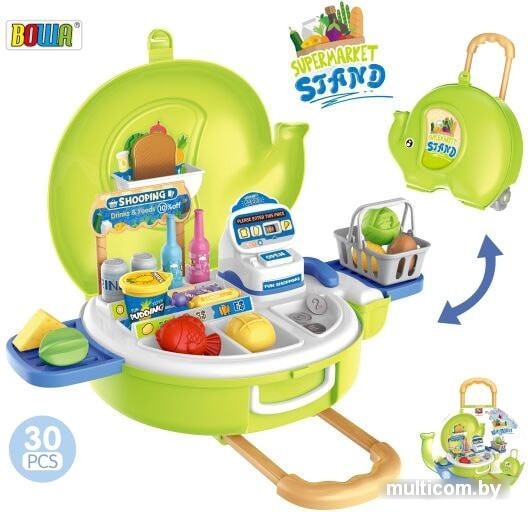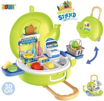 | Информация | Отличный игровой набор непременно понравится всем детям своей оригинальностью. С таким магазином обязательно захочется поиграть даже взрослым. Набор состоит из чемоданчика с ручкой в котором хранятся различные продукты и кассовый аппарат. Ребенок с удовольствием будет представлять себя продавцом и научится обращаться с деньгами. Игра способствует развитию воображения. |
