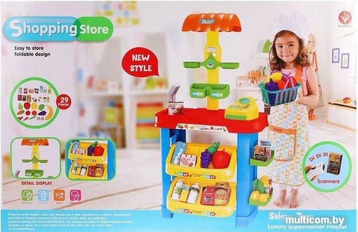 | Информация | Удивительный ростовой набор «Супермаркет» - прекрасный подарок для мальчиков и для девочек. Ребёнок сможет не только играть в увлекательную игру, но и освоить азы устного счета. Ведь нужно сосчитать продукты, принять деньги от покупателя и выдать сдачу! |