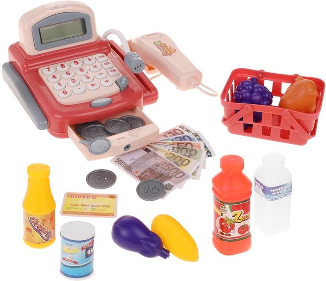 | Состав набора | касса, корзина, деньги, ключ, овощи, курица, сок, купюры, монеты, пластиковая карта |