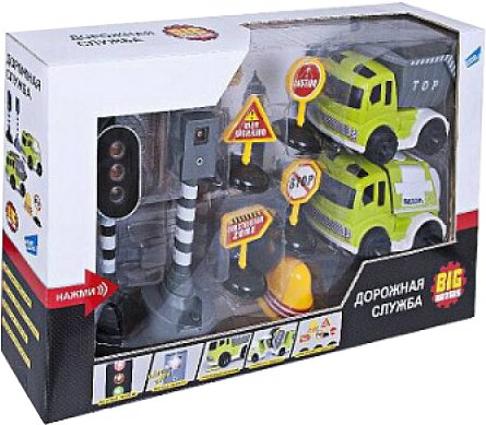 | Информация | Набор от Big Motors со спецтехникой, светофором и дорожными знаками - станет отличным подарком для Вашего ребенка! Комплектность: мусоровоз, самосвал, светофор, камера контроля скорости, 5 знаков дорожного движения. |