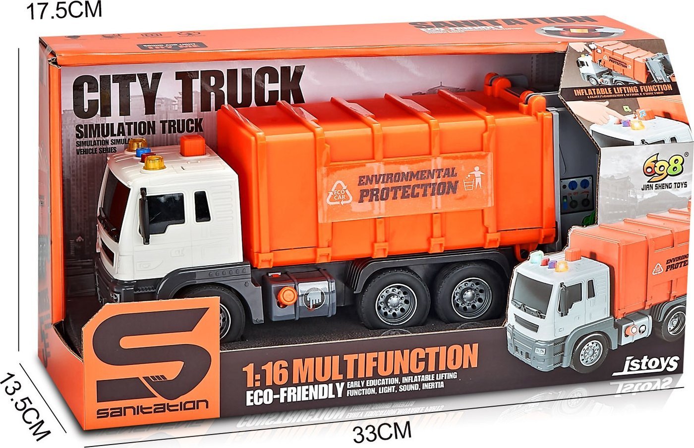 | Информация | - Чистота и эффективность в каждой детали! В комплекте идут батарейки, чтобы вы могли сразу начать свои приключения. - Световые и звуковые эффекты делают игру более реалистичной и увлекательной. - Инерционный механизм: просто толкните игрушку, и она отправится в путь! - Подвижные контейнер и баки обеспечивают максимальную функциональность и добавляют реалистичности в игру. - Открытая упаковка в виде цветной картонной коробки идеально подходит для хранения и станет замечательным подарком! |