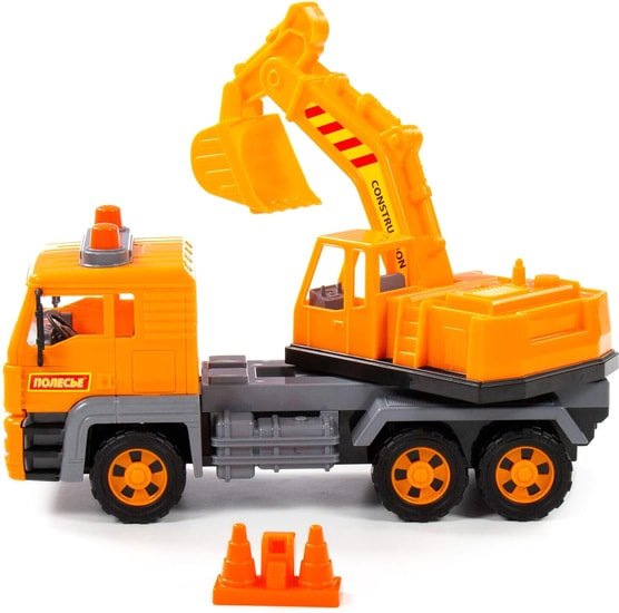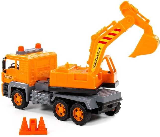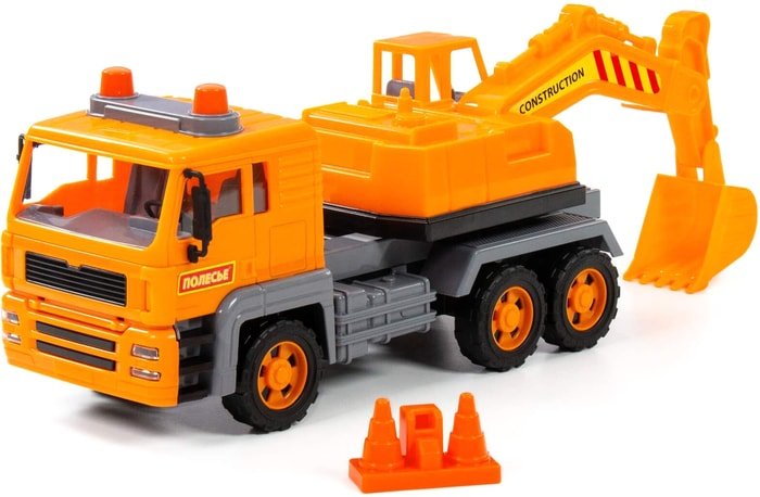 | Информация | Автомобиль-экскаватор инерционный «Алмаз» от фабрики «Полесье» - это качественная реалистичная игрушка, конструкция которой полностью повторяет дизайн настоящей техники. Спецмашина имеет три пары колёс на металлических осях, кроме того, она оснащена поворотной платформой с подвижным ковшом, который позволит придумывать различные сценарии игры. На кабине авто имеется имитация проблесковых маячков. В комплекте с экскаватором идут дорожные конусы. Изготовлена игрушка из качественных материалов, она дополнит автопарк любого малыша и сделает игру ещё интереснее! |