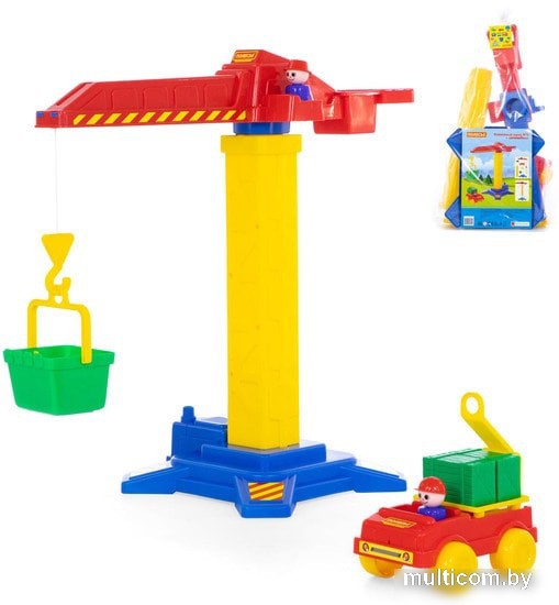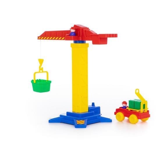 | Информация | Любителям спецтехники обязательно придётся по вкусу Башенный кран №1 от компании «Полесье». Кран оснащён подъёмным механизмом. Стрела вращается вокруг своей оси. В наборе с краном идёт корзина для транспортировки груза, а также автомобиль с улыбчивыми строителями за рулём. Для того, чтобы игра была более реалистичной набор дополнен ящиками, имитирующими груз. |