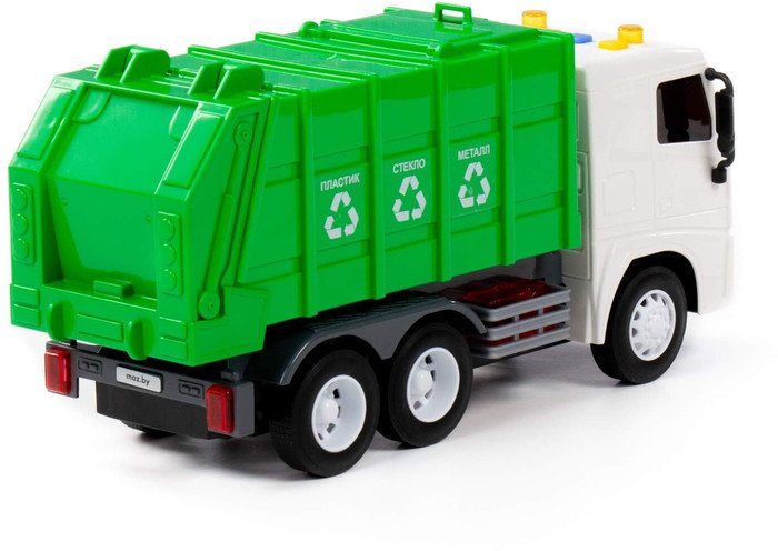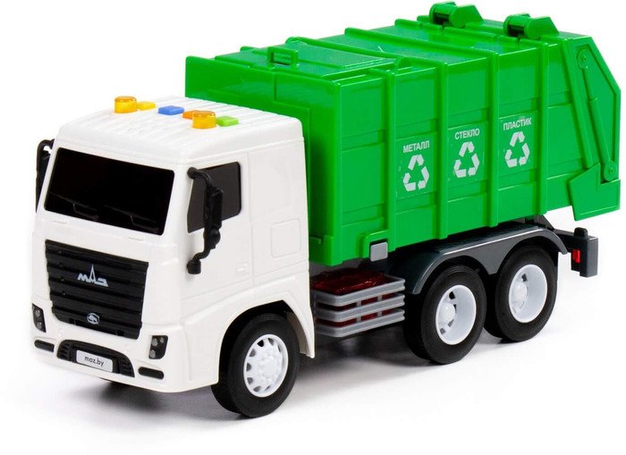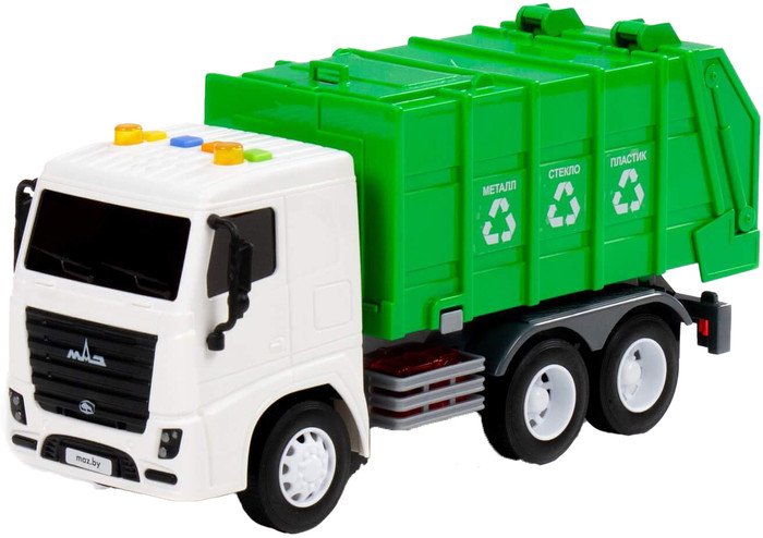 | Информация | ? Игрушечный автомобиль Полесье Маз коммунальный с инерционным механизмом, звуком и светом 94070 создан по лицензии Минского автомобильного завода МАЗ. ? Машинка имеет устройство задней загрузки/разгрузки отходов, что добавляет реализма игре и позволяет познакомиться с особенностями спецтехники. ? На кабине автомобиля расположены 4 кнопки для управления звуковыми и световыми сигналами. ?? Автомобиль оборудован инерционным механизмом. |