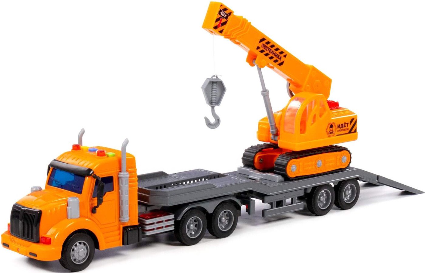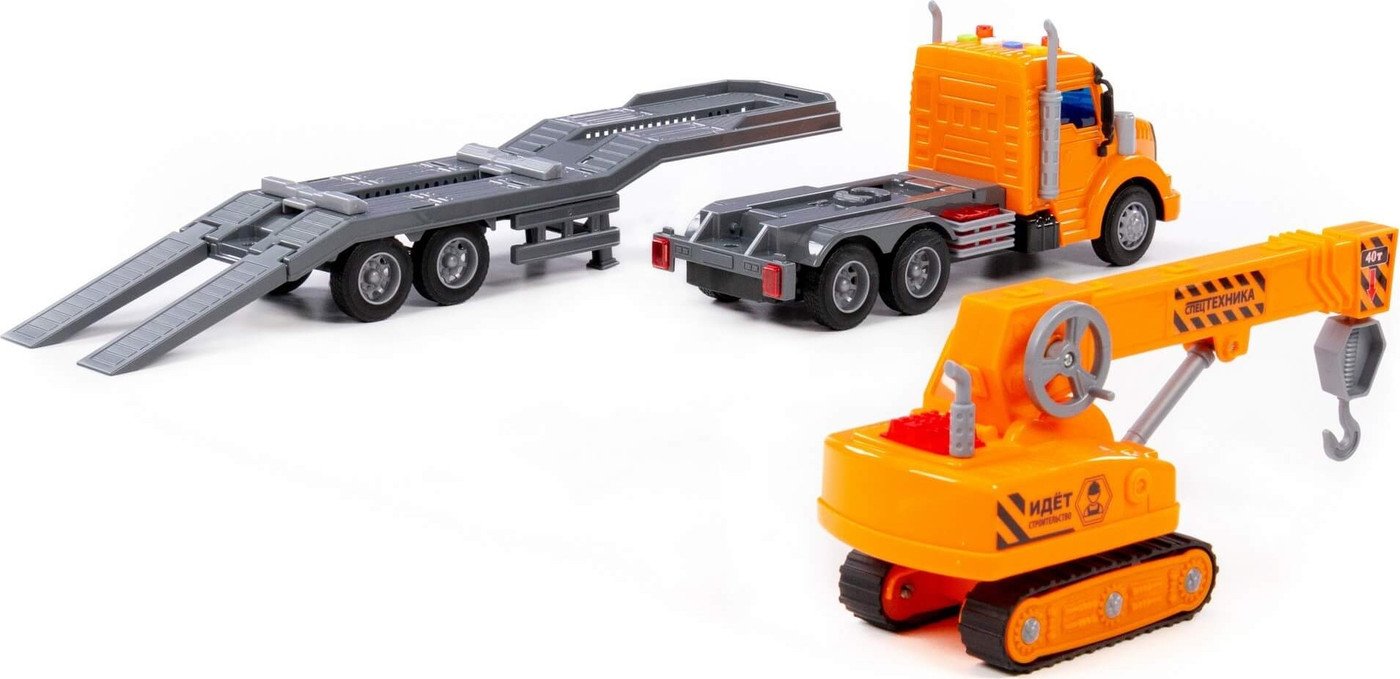 | Информация | - Набор Полесье Профи Трейлер 84009 - полная копия настоящей техники. В комплекте гусеничный кран, который можно перевозить на платформе трейлера. Автомобиль оснащен инерционным механизмом и 4 кнопками управления звуковыми и световыми эффектами на кабине. Продается в коробке. |