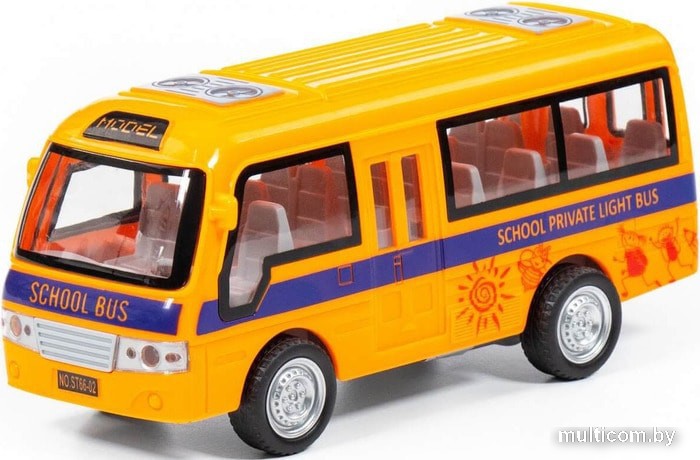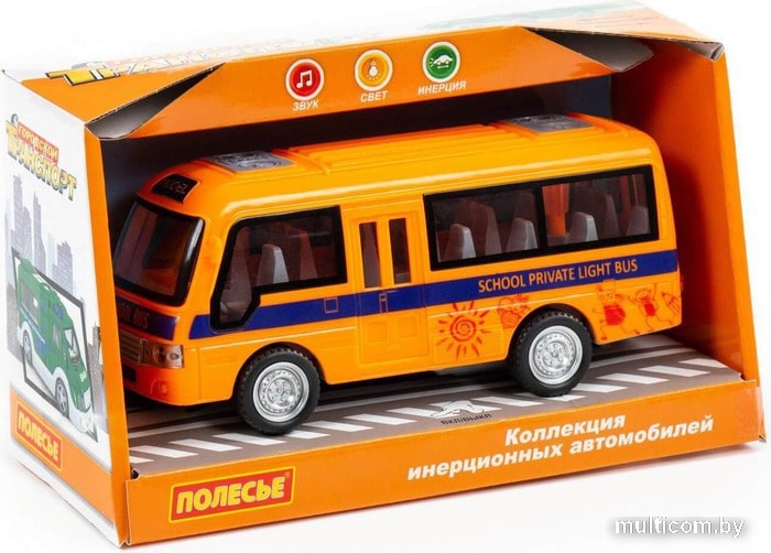 | Информация | Школьный автобус, модель инерционная (со светом и звуком) (в коробке) имеет современный дизайн, соответствующая реальным аналогам транспорта. Игрушка выполнена из качественных материалов. Автобус оснащен инерционным механизмом и резиновыми колёсами, имеет звуковые и световые эффекты. |