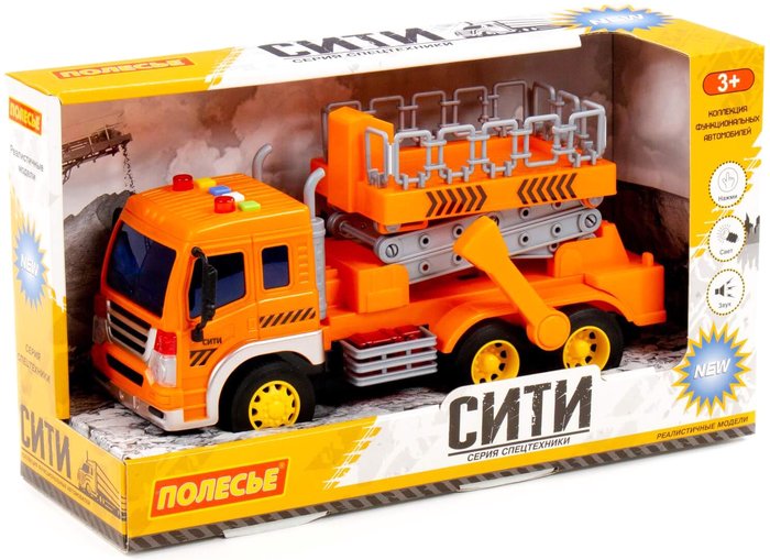 | Информация | Автомобиль с подъёмником инерционный «Сити» от фабрики «Полесье» - это качественная реалистичная игрушка, конструкция которой полностью повторяет дизайн настоящей техники. Спецмашина имеет три пары колёс на металлических осях, кроме того, она оснащена подъёмным механизмом, который позволит придумывать различные сценарии игры. На кабине авто имеется 4 кнопки управления звуковыми и световыми эффектами. |