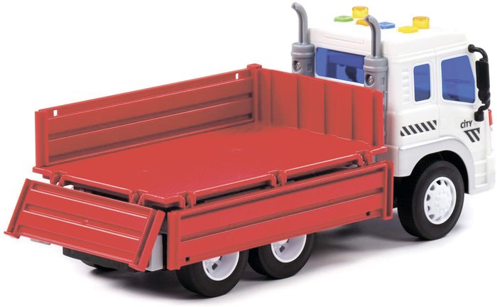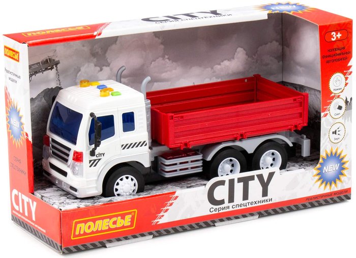 | Информация | Автомобиль бортовой инерционный «Сити» от фабрики «Полесье» - это качественная реалистичная игрушка, конструкция которой полностью повторяет дизайн настоящей техники. Спецмашина имеет три пары колёс на металлических осях, кроме того, она оснащена бортовым прицепом, который позволит придумывать различные сценарии игры. На кабине авто имеется 4 кнопки управления звуковыми и световыми эффектами. |
