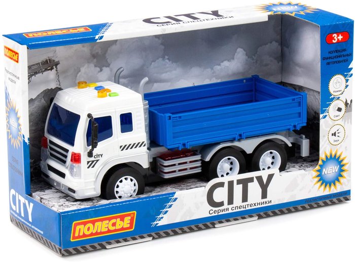 | Информация | Автомобиль бортовой инерционный «Сити» от фабрики «Полесье» - это качественная реалистичная игрушка, конструкция которой полностью повторяет дизайн настоящей техники. Спецмашина имеет три пары колёс на металлических осях, кроме того, она оснащена бортовым прицепом, который позволит придумывать различные сценарии игры. На кабине авто имеется 4 кнопки управления звуковыми и световыми эффектами. |