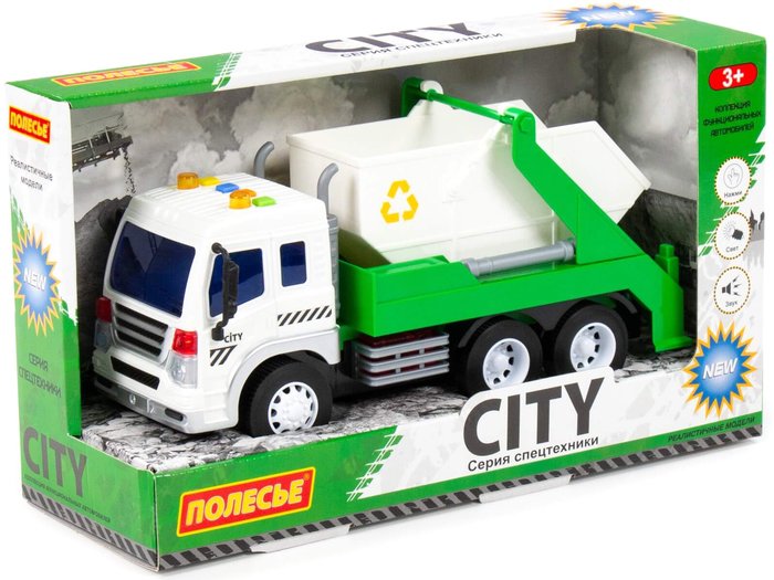 | Информация | Автомобиль-контейнеровоз инерционный «Сити» от фабрики «Полесье» - это качественная реалистичная игрушка, конструкция которой полностью повторяет дизайн настоящей техники. Спецмашина имеет три пары колёс на металлических осях, кроме того, она оснащена съёмным контейнером, который позволит придумывать различные сценарии игры. На кабине авто имеется 4 кнопки управления звуковыми и световыми эффектами. |